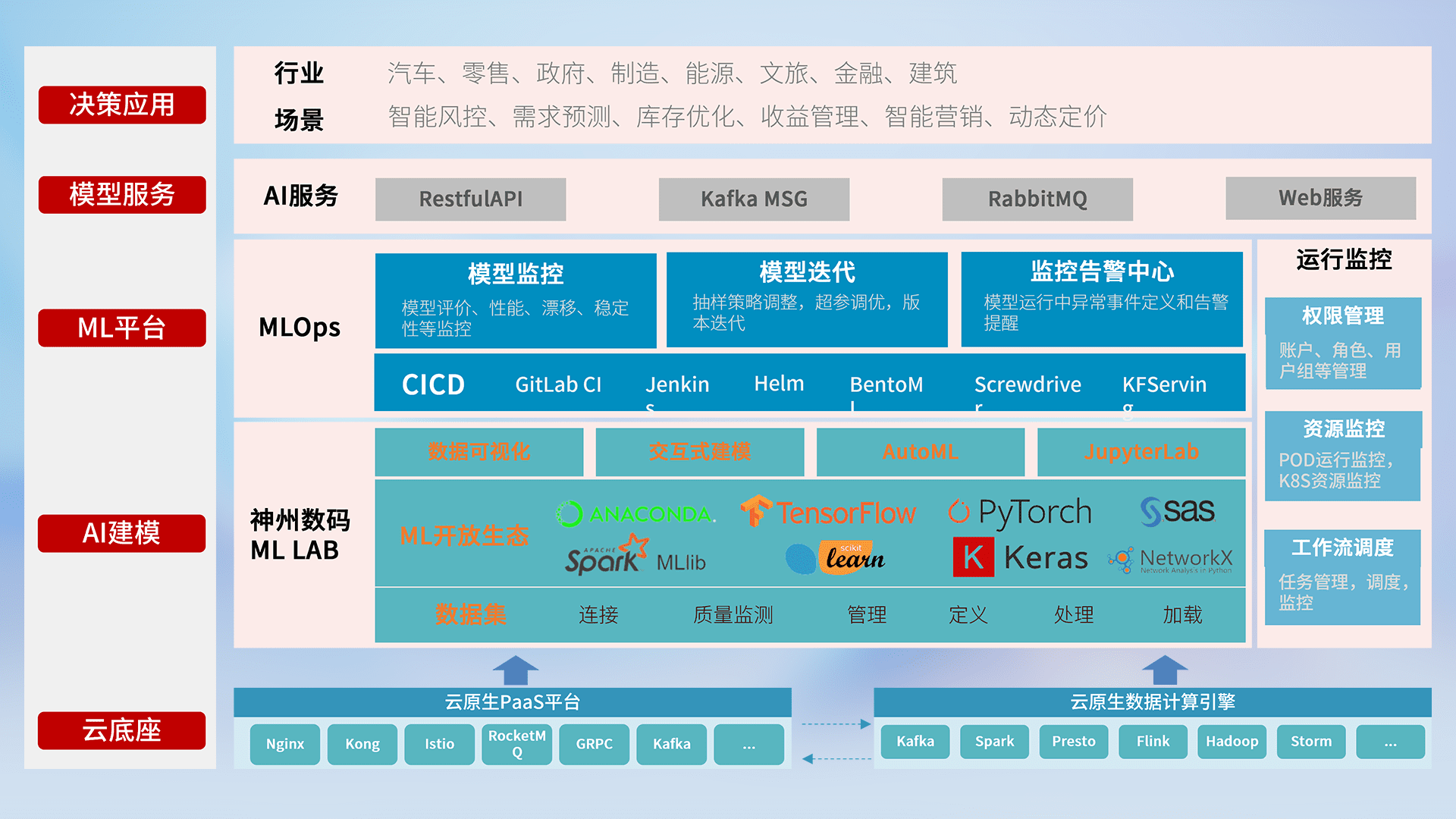 数据+模型双引擎驱动,,,面向智能服务场景,,快速灵活利用AI技术,,,支持业务决策,,,,助力企业智能化转型破局。。